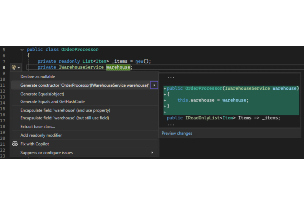 Ima više načina da pokrenemo ovaj refactoring u Visual Studio, ali jedan od najlakših je da samo promenimo naziv:
