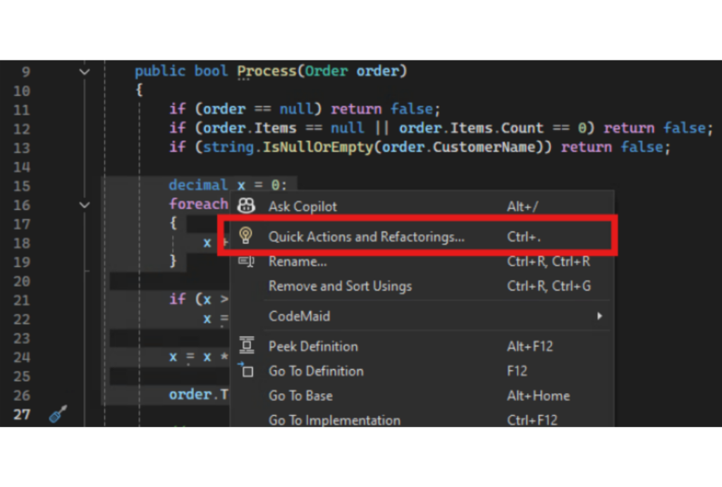 Srećom, moderna okruženja za razvoj softvera (IDE) nam nude alate za automatski refactoring, što umnogome olakšava posao i smanjuje rizik. Evo primera kako te alate možemo iskoristiti u Visual Studio okruženju: