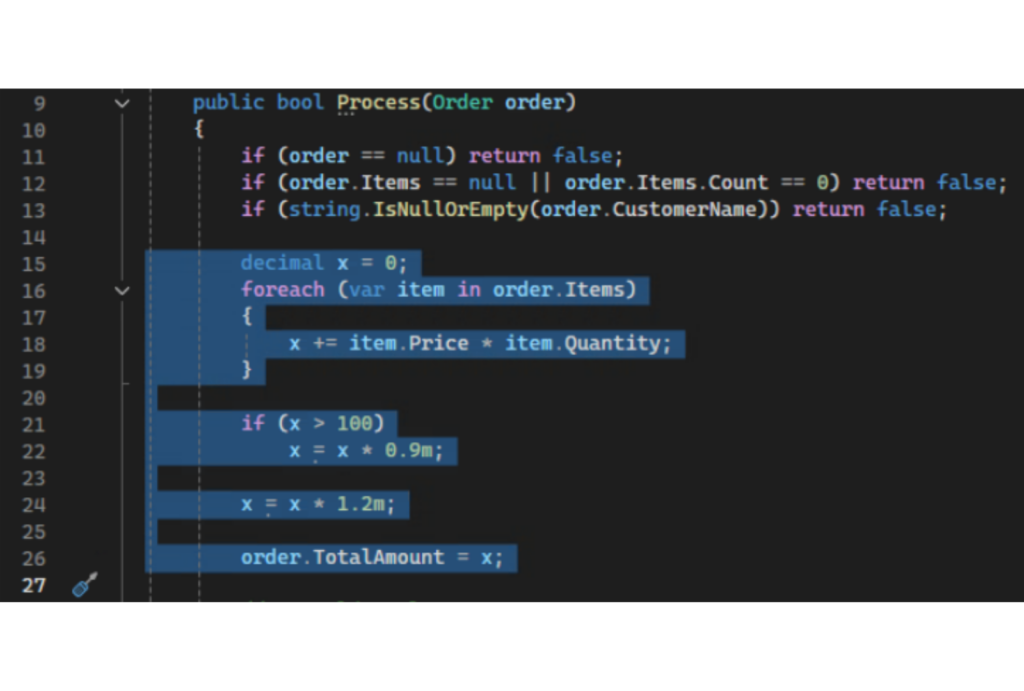U ovom tekstu delim devet kratkih, praktičnih refactoring rutina koje zahtevaju 15 minuta ili manje, a dugoročno prave ogromnu razliku. Svaku ilustrujem na jednom malom C# projektu za obradu porudžbina (RefactoringDemo TODO: upload and add link to GH) — direktorijum Before sadrži kod pre refaktorisanja, a After primenjuje sve obrasce o kojima govorimo.