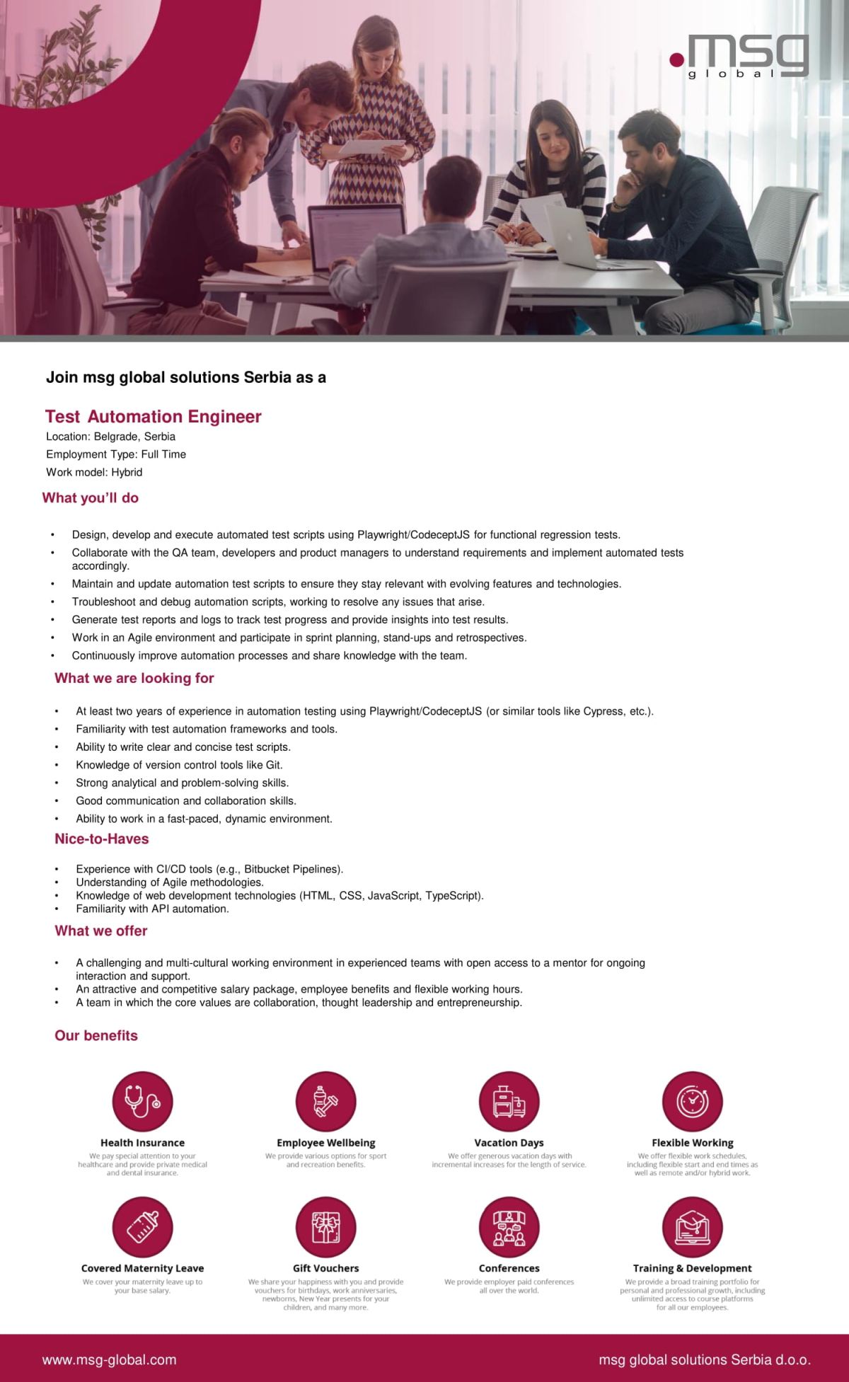 In its early years, msg global solutions Serbia was primarily known for its fast growth, which attracted a pool of young, talented, and highly motivated professionals The company's dedication to nurturing its employees' growth, supported by exceptional training initiatives, has been the cornerstone of its success. This approach allowed msg global solutions Serbia to sharpen its focus on the msg global solution portfolio, enhance its functional and technical expertise, and strengthen its ability to serve global clients across the globe.